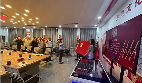 接下來,利用黨建“VR”智慧沙盤中的抗日戰爭紀念展館,集中回顧中華民族的抗戰歷史,深切緬懷在抗日戰爭中犧牲的革命先輩。最后,劉亞萍帶領與會黨員在鮮紅的黨旗下,莊嚴的舉起右手,握拳宣誓,重溫入黨誓詞,進一步增強黨性觀念,強化責任擔當。