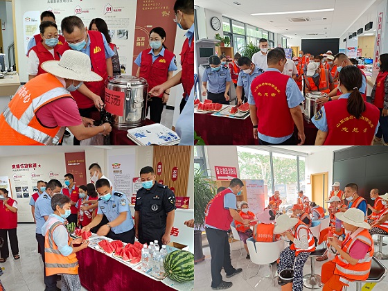 活動現場,黨員們與社區工作人員為環衛工人提前熬制好綠豆湯,準備了西瓜、礦泉水等防暑降溫物品,為環衛工人送去貼心的關懷,感謝他們無懼酷暑,盡心盡責地為轄區的環境衛生做出的貢獻,并叮囑他們高溫作業時,增強自我保護意識,注意防暑降溫。環衛工人們紛紛表示,一定克服高溫天氣堅守崗位,一如既往地把環衛工作做好,為創建全國文明城市貢獻自己的力量。