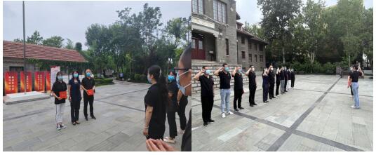 濰縣樂道院迄今有130多年歷史,是二戰期間國際僑民與中國人民團結反抗日本法西斯的正義斗爭和國際主義精神的歷史見證,也是中國共產黨早期在濰縣活動的重要基地,更是濰坊愛國主義和革命傳統教育的重要陣地、國際交往和文化交流的重要窗口。在講解員的引導下,全體黨員認真觀看了樂道院的每一幅珍貴圖片,深入了解了樂道院不同時期的歷史故事。在和平廣場,全體黨員為7月份入黨的兩名同志過“政治生日”,軍供公司黨支部書記、董事長劉亞萍向他們發放生日禮物。最后,全體黨員集體進行入黨宣誓。