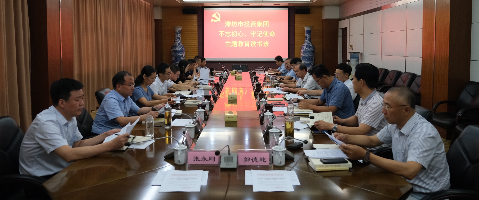 2019年9月16-20日,濰坊市投資集團有限公司黨委舉辦“不忘初心、牢記使命”主題教育讀書班,集團公司在家領導班子成員,黨支部書記、各部室、權屬公司主要負責人參加學習。市委第15巡回指導組領導張永剛、郭德乾到班進行指導。
