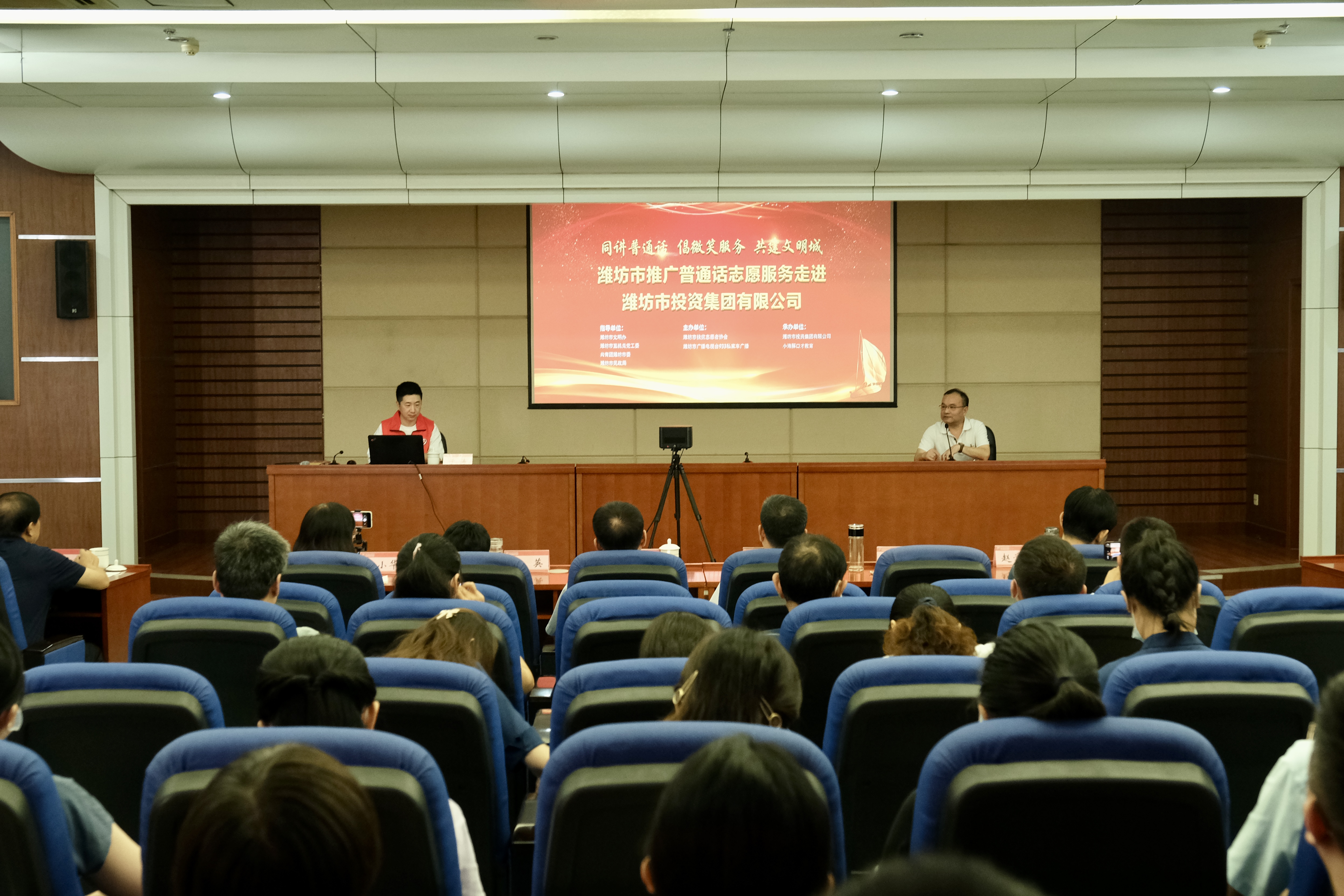 在全國推廣普通話宣傳周,集團公司全員推廣使用普通話活動也進入高潮。9月15日,集團公司組織開展推廣使用普通話專題培訓活動,邀請濰坊市扶貧志愿者協會副會長、小海豚口才教育創始人于濤老師作現場授課。集團公司領導班子成員、集團總部及國維公司全體員工、各權屬公司班子成員及普通話推廣員參加培訓。