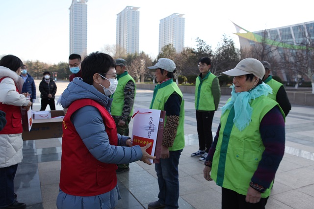 濰投巾幗志愿服務隊和集團公司一眾志愿者們早早到位,頂著凜冽的寒風,同環衛工人一起清理衛生、規整車輛。工作結束,集團領導和志愿者們為環衛工人們送上了保溫水杯和防寒手套,感謝他們的辛勤付出,并提醒他們注意身體,做好保暖措施。環衛工人們接過慰問品,臉上笑開了花,高興地說:“這手套真厚實,看著就暖和!”環衛大叔、大姨們紛紛表示集團送來的溫暖是對環衛工人的關愛,今后會一如既往地把環衛工作做好,為大家營造干凈整潔的城市環境。