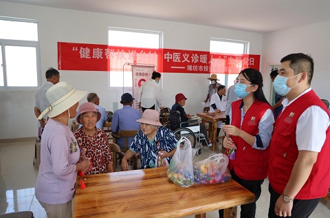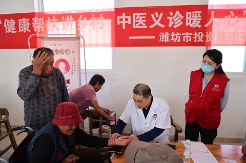 在慰問的同時,集團公司邀請寒亭區人民醫院醫師為全村七十歲以上老人進行中醫問診,讓村里老人在家門口享受醫院專家健康服務。義診現場,黨員志愿者們熱情地給前來候診的老人登記、沖茶倒水、贈送健康保健香囊。前來看診的任大爺臉上笑開了花,直夸黨的惠民政策好,集團派出的第一書記有心!