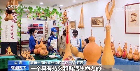 濰坊十笏園文化街區打造以非物質文化遺產為核心,現已入駐風箏、年畫、陶藝、印染、剪紙、繡藝、核雕、古琴、嵌銀、仿古銅首批十項代表性非遺項目云集一堂,從保護傳承到創新發展,從展示體驗到傳播推廣,從互動交流到研學培訓,從融合發展到文化消費,“非遺+創新”的發展理念和思路,推動了非遺與文化、旅游的融合發展,讓這些古老的民族文化與現代生活完美融合,在新時代煥發出勃勃生機。
