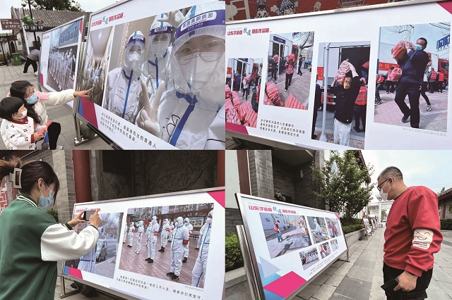 用鏡頭記錄抗疫瞬間,用照片書寫疫線記憶,用真實影像講述平凡日常背后的汗水和付出。4月30日起《山東手造暨抗疫攝影作品展》在十笏園文化街區舉辦,在“五一”國際勞動節致敬、謳歌每一位在抗擊疫情中平凡而偉大的一線工作者。