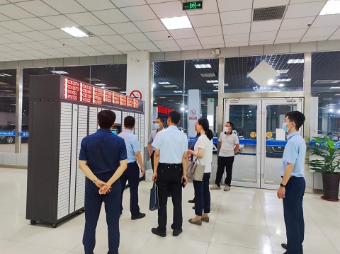 在號牌中心二部,考察團實地觀摩了號牌發放領取環節,對公司自主研發的機動車號牌智能存取柜和號牌自助領取機稱贊不已,一致認為,這兩款設備改變了傳統的號牌發放領取模式,使工作變得更加智能化、簡便化,值得在行業內推廣應用。