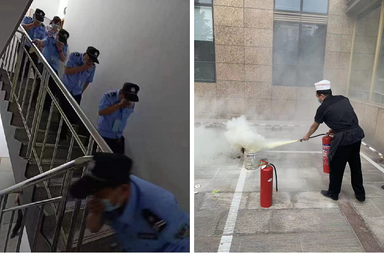 授課結束后,培訓老師帶領大家對消防栓的使用和疏散逃生進行了消防應急演練。隨著警報響起,大家捂住口鼻,彎腰小跑,按照疏散路線快速有序的撤離,到達安全區域后,及時清點人數并上報,整個演練過程緊張有序。