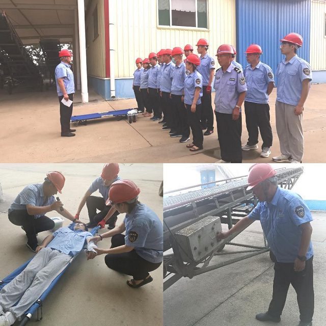 機械傷人事故演練,模擬一名員工在維修機械時突遭機械傷害,現場其他人員立即切斷機械電源,將傷員移至安全處,并電話告知保衛科。保衛科立即啟動應急預案,組織人員攜帶擔架、急救箱等物資趕赴現場,在進行現場急救的同時,安排人員撥打120急救電話,并將有關情況告知公司。在120急救人員到來之前,持續做好傷員的應急救護。演練期間,公司安全管理人員講解了應急救援知識和注意事項,強調現場救援時必須檢查相關電源是否已經切斷,確保機械停機,并注意現場環境,避免造成再次傷害。