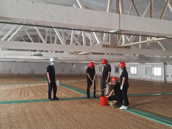 為確保今年市級儲備糧小麥輪換驗收順利通過,在小麥入庫完成后,擂鼓山國糧儲備庫公司按照上級有關要求,認真細致平整糧面、清掃倉內衛生、鋪設踏糧板和測溫電阻,并對倉房、樓梯、護欄、爬梯進行了維護和清掃。同時,為防范暴雨災害,公司第一時間在倉門內安裝了防水墻,真正將汛期的安全隱患消滅在萌芽之中。