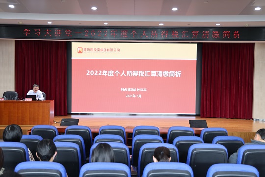 為幫助廣大干部職工順利完成2022年度個人所得稅匯算清繳,及時享受個稅優惠,3月7日下午,集團公司財務管理部經理孫召軍為大家進行詳盡的講解。