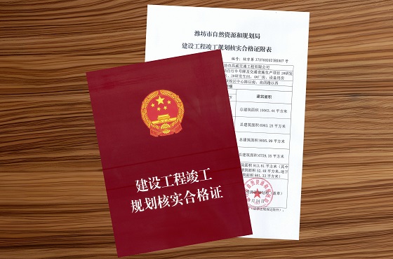 在濰坊市自然資源和規劃局保稅分局領導的積極推動下,項目順利通過建設工程竣工規劃核實,并收到《建設工程竣工規劃核實合格證》。