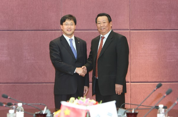 4月12-13日,韓國產業銀行總行金泰鎬部長一行來公司就在濰坊設立產業投資基金事宜進行合作洽談,雙方簽訂《合作會談備忘錄》。公司總經理陳學儉、總會計師陳寶慶、總經濟師曾剛及投資發展部、財務審計部負責同志參加會談。市金融辦、市外匯管理局有關負責同志應邀出席。