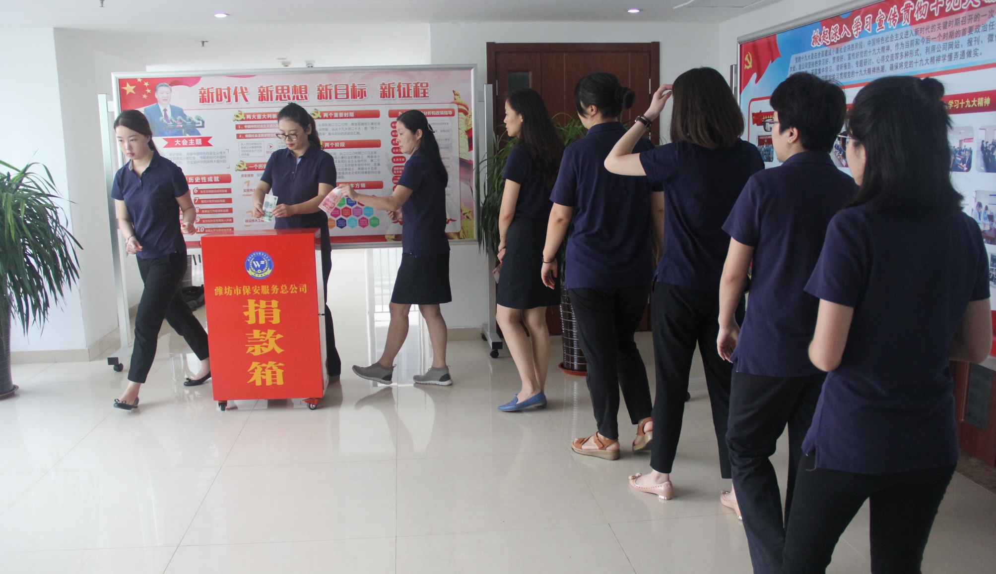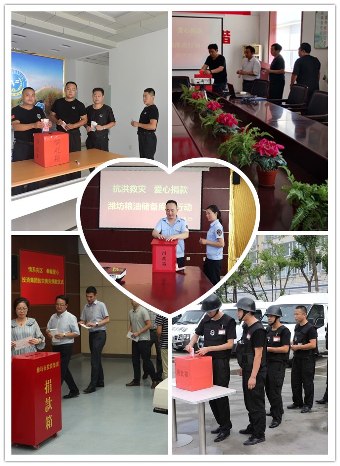 集團公司及國維創投公司、國維實業公司、國維匯金公司干部職工在集團公司總部參加捐助活動。市保安服務總公司、濰坊糧油儲備庫、擂鼓山國家糧食儲備庫、市軍糧供應站等權屬公司分別在本單位組織了捐款活動。