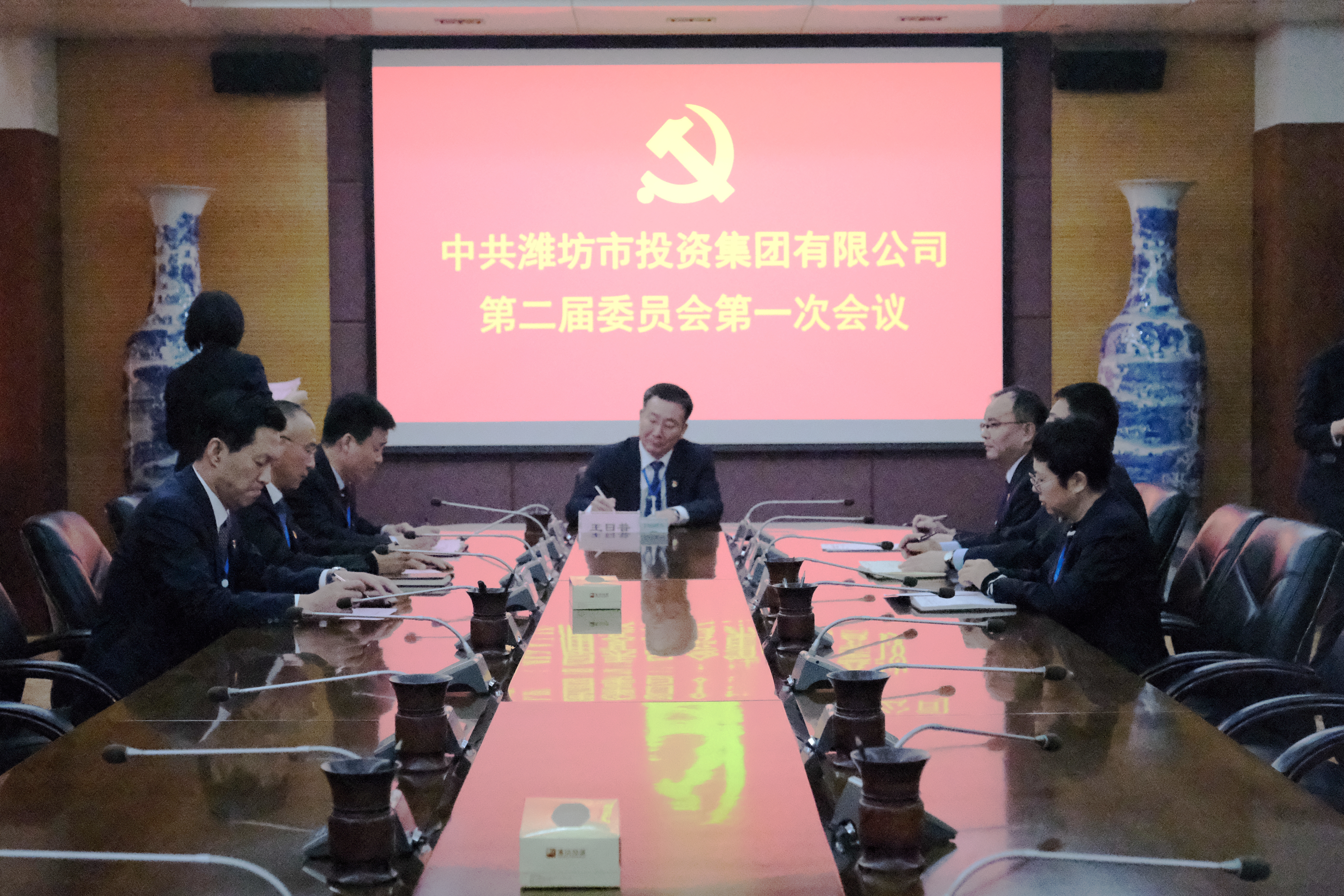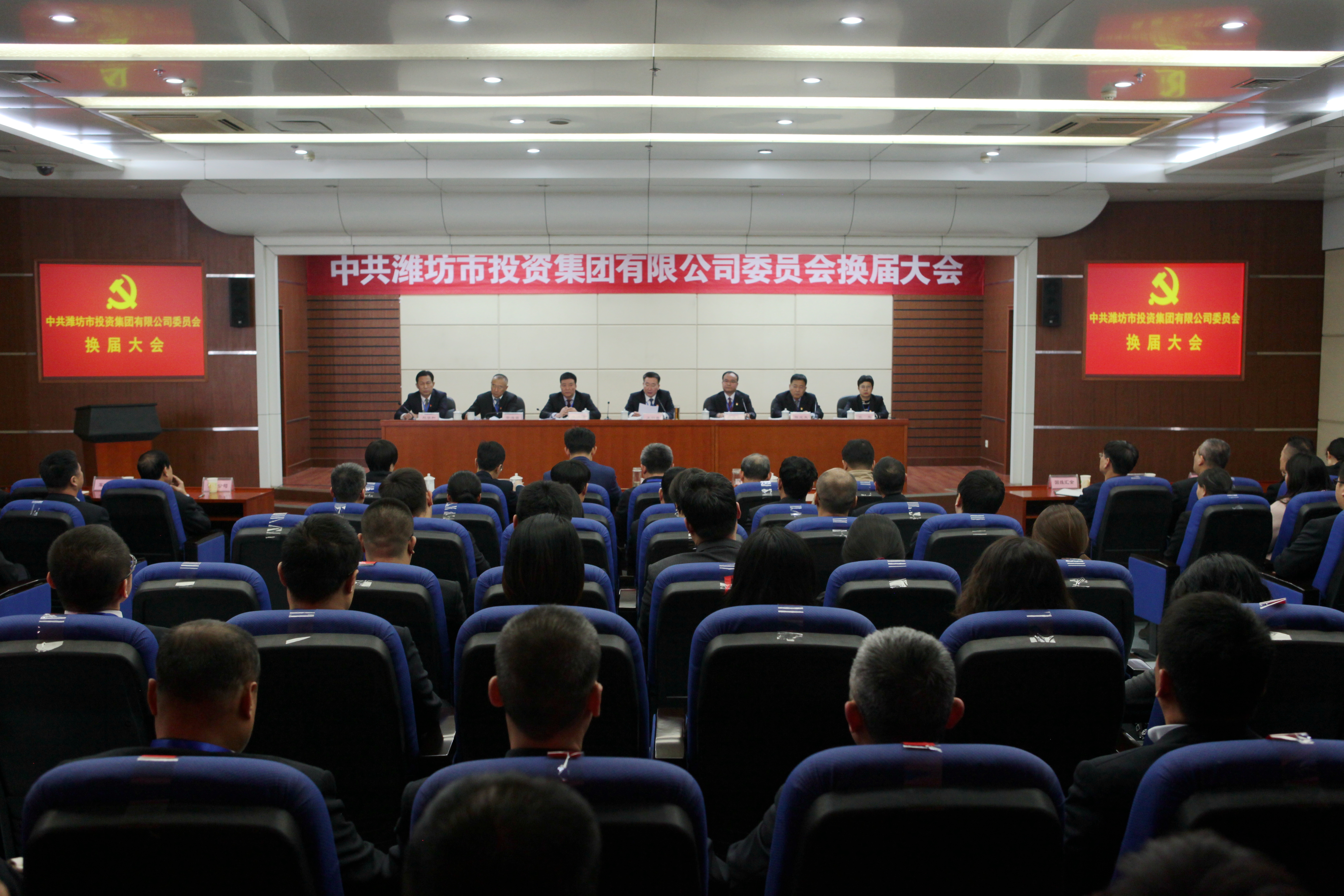 2019年12月10日上午,中共濰坊市投資集團有限公司委員會召開換屆大會。大會審議通過了黨員代表資格審查情況報告、三年以來集團公司黨委工作報告和紀委工作報告,選舉產生了新一屆委員會委員。集團公司101名黨員代表參加會議,4名預備黨員代表、1名積極分子代表和2名民主黨派代表列席會議。大會在全體奏唱國歌中拉開帷幕。