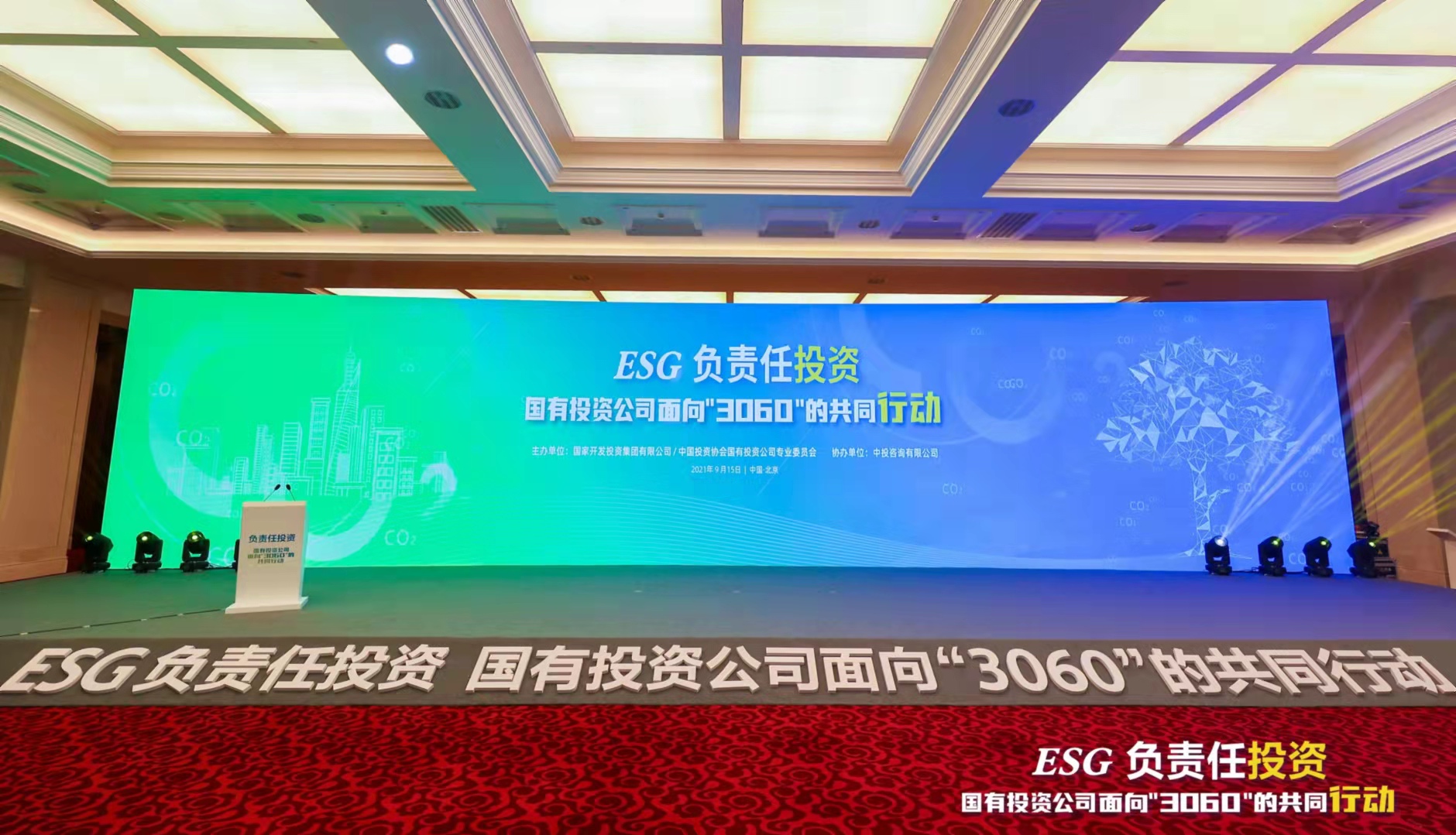 2021年9月15日,負責任投資——國有投資公司面向“3060”共同行動在北京舉辦。本次活動由國家開發投資集團有限公司、中國投資協會國有投資公司專業委員會(以下簡稱國投委)聯合主辦,中投咨詢有限公司協辦。本次活動旨在貫徹落實黨中央重大戰略決策部署,積極響應國家碳達峰、碳中和發展目標,深刻把握機遇,認清挑戰,引領國有投資公司轉變投資理念,促進行業協同共進,探索國有投資公司綠色低碳轉型和高質量發展之路,彰顯國有投資公司的責任擔當。集團公司黨委委員、副總經理董晨勝代表集團公司參加會議。